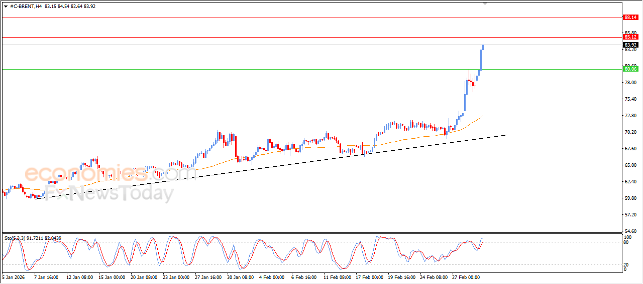 I prezzi del Brent hanno esteso i loro guadagni rispetto agli ultimi livelli intraday, dopo aver violato la resistenza principale di $ 80,00 nelle contrattazioni mattutine di oggi, sfruttando il supporto dinamico rappresentato dal suo trading sopra EMA50, rafforzando la forza e la stabilità del principale trend rialzista su base di breve termine, oltre all'emergere di segnali positivi dagli indicatori di forza relativa, dopo aver scaricato le sue condizioni di ipercomprato, fornendo la capacità di continuare il percorso rialzista.
