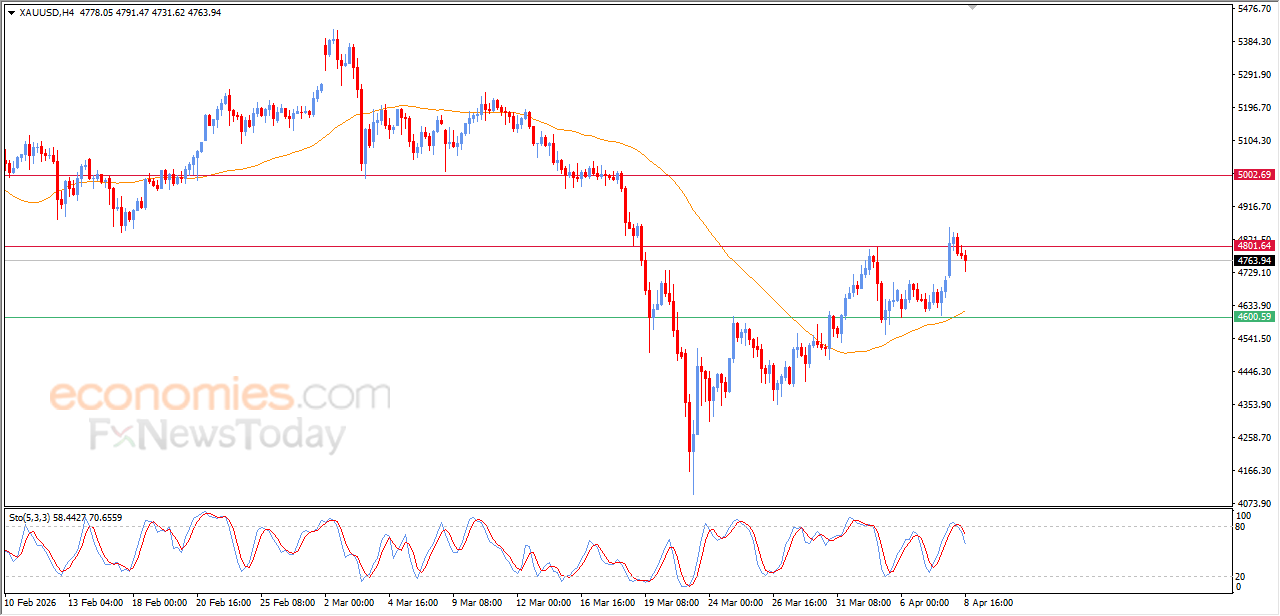 L'oro ha registrato un calo nelle ultime contrattazioni intraday, con la comparsa di segnali negativi dagli indicatori di forza relativa, dopo aver raggiunto livelli di ipercomprato, nel tentativo di liberarsi di parte di queste condizioni di ipercomprato, per recuperare la forza positiva che potrebbe aiutarlo a superare la resistenza chiave a 4.800 dollari, nel contesto del supporto dinamico rappresentato dalla sua posizione al di sopra della media mobile esponenziale a 50 periodi (EMA50), rafforzando la stabilità dell'onda correttiva rialzista nel breve termine.