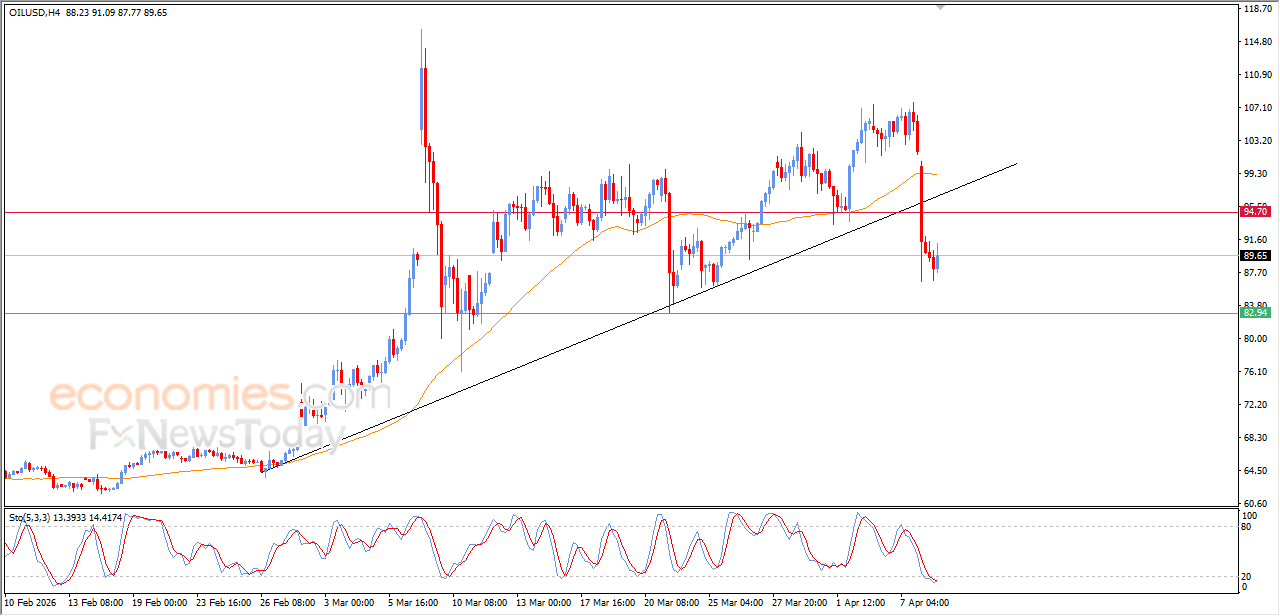Il prezzo del petrolio greggio è aumentato nell'ultima seduta di contrattazione intraday, nel tentativo di recuperare parte delle perdite precedenti, cercando di superare le chiare condizioni di ipervenduto evidenziate dagli indicatori di forza relativa, soprattutto con la comparsa di segnali positivi sovrapposti, nonostante la persistenza della pressione negativa dovuta al suo andamento al di sotto della media mobile esponenziale a 50 periodi (EMA50), influenzata dalla rottura della principale linea di tendenza rialzista a breve termine.