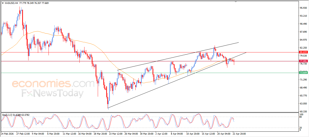 Il prezzo dell'argento ha registrato movimenti fluttuanti durante la recente sessione di negoziazione intraday, influenzato da una formazione tecnica ribassista rappresentata da un pattern a cuneo ascendente nel breve termine, intensificando la pressione di vendita sull'attuale andamento dei prezzi e indebolendo le possibilità di stabilità a breve termine.