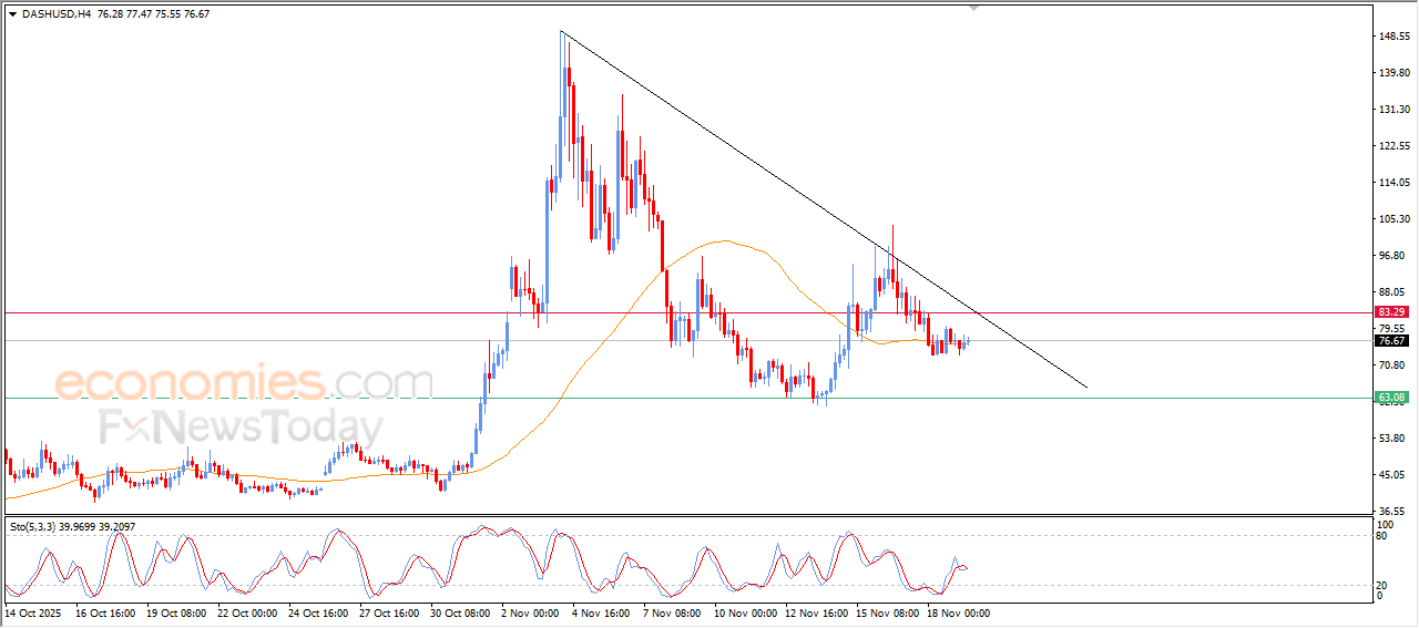 DASH ha registrato un andamento discontinuo nelle sue ultime contrattazioni intraday, supportato dalla sua media mobile semplice a 50 giorni, mentre il più ampio trend correttivo al ribasso di breve termine continua a dominare, con l'azione dei prezzi che si muove lungo una linea di tendenza discendente. Nel frattempo, gli indicatori RSI hanno iniziato a emettere segnali negativi dopo che il prezzo aveva precedentemente superato le sue condizioni di ipervenduto, aggiungendo ulteriore pressione ribassista in futuro.