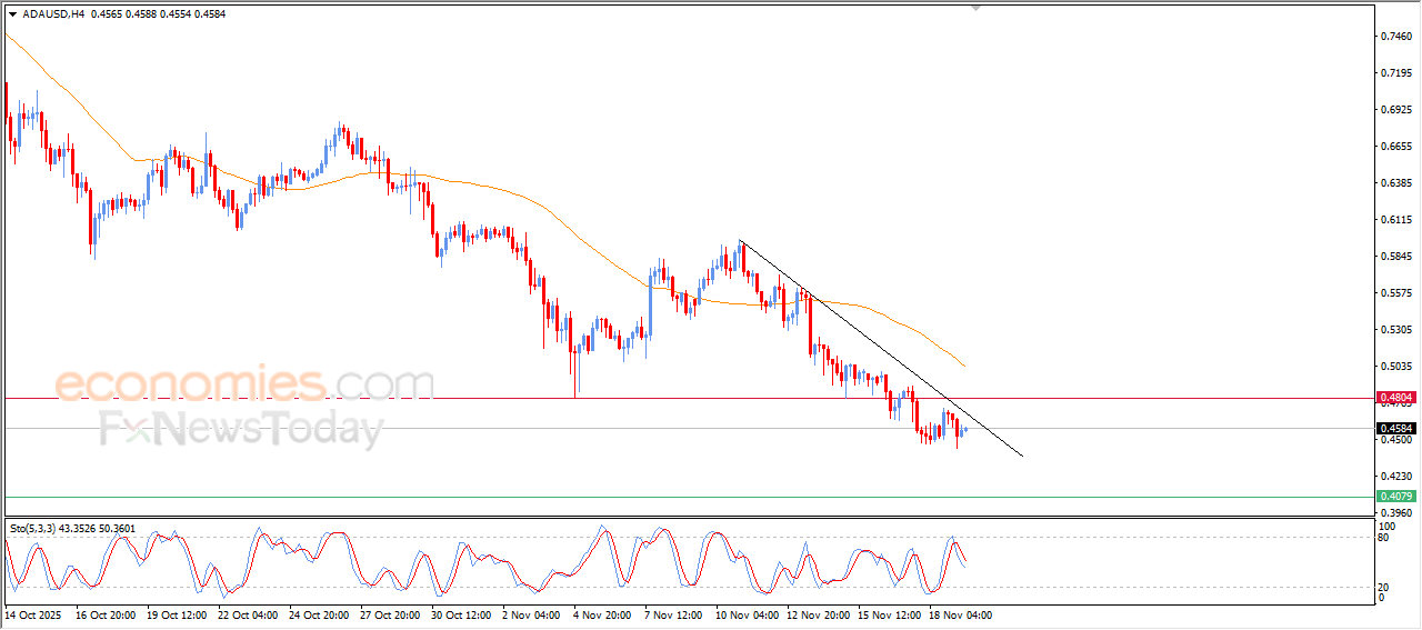 Cardano (ADAUSD) ha mantenuto un andamento ribassista nelle ultime contrattazioni intraday, sotto la pressione del continuo movimento al di sotto della sua media mobile semplice a 50 giorni, che rafforza il predominio del trend ribassista primario a breve termine, soprattutto con l'azione dei prezzi che si muove lungo una trendline secondaria discendente. Inoltre, si è formata una divergenza negativa sugli indicatori RSI dopo aver raggiunto livelli di ipercomprato eccessivo rispetto all'andamento dei prezzi, accompagnata da rinnovati segnali negativi.