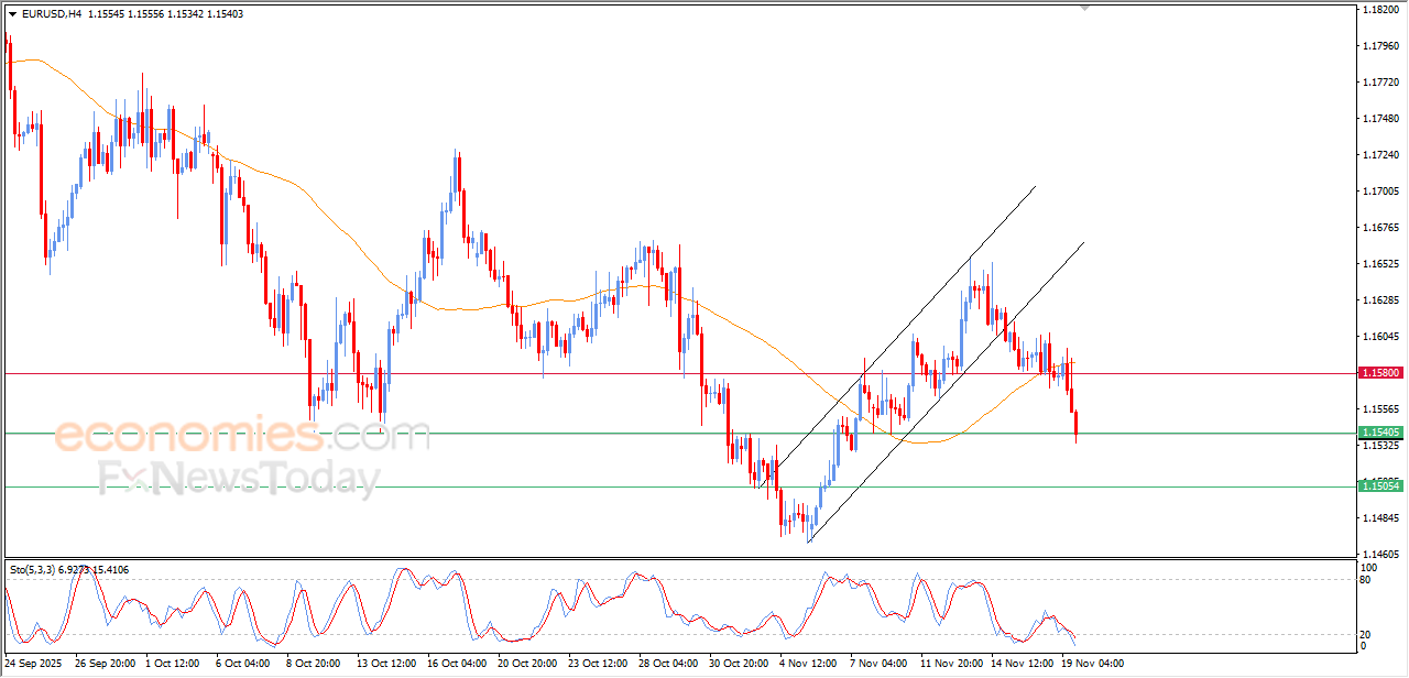 L'EURUSD è scivolato al ribasso nelle ultime contrattazioni intraday, raggiungendo il supporto di 1,1550; questo supporto rappresenta il nostro obiettivo previsto nella nostra precedente analisi, in mezzo all'emergere di segnali negativi sugli indicatori di forza relativa, nonostante il raggiungimento di livelli di ipervenduto, sotto il predominio del principale trend ribassista a breve termine.