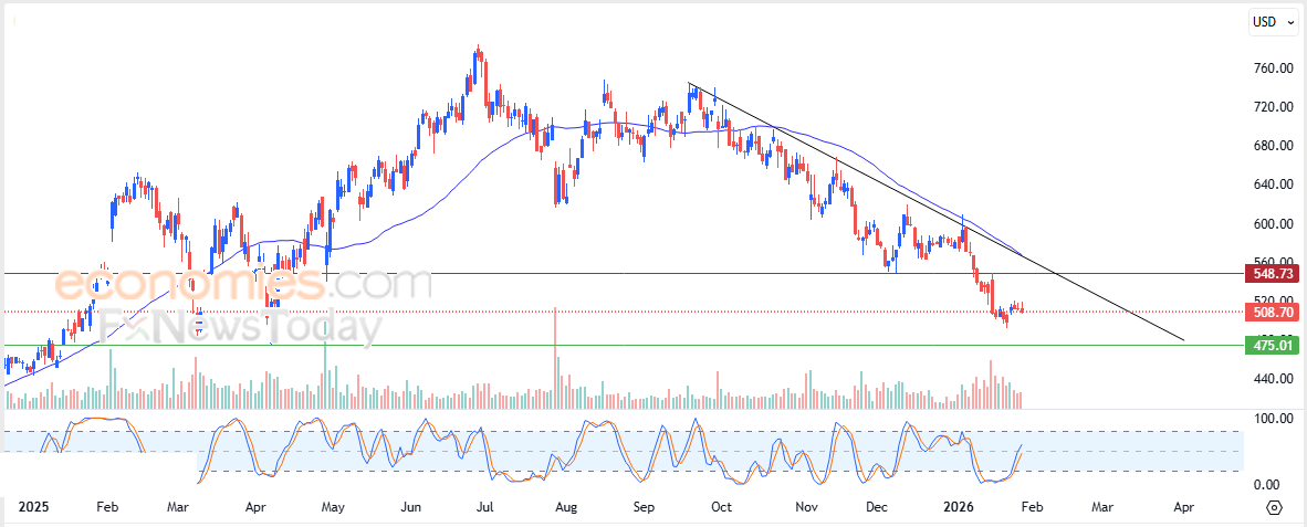 Pertanto prevediamo che il prezzo delle azioni scenderà nelle prossime contrattazioni, finché il livello di resistenza di $ 548,75 rimarrà intatto, per raggiungere il livello di supporto di $ 475,00.