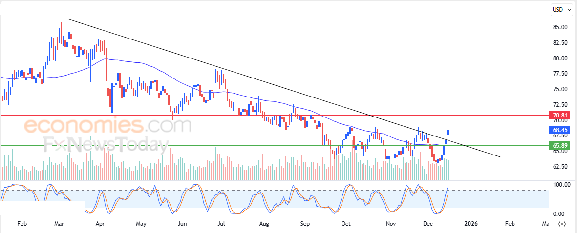 Pertanto ci aspettiamo che il titolo aumenti nelle prossime contrattazioni, a patto che rimanga al di sopra del livello di supporto a 65,90 $, puntando al primo livello di resistenza a 70,80 $.