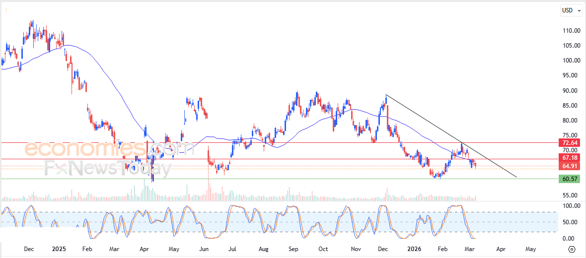 Pertanto prevediamo che il prezzo delle azioni diminuirà durante le prossime sessioni di negoziazione, a patto che rimanga al di sotto del livello di resistenza a 67,20 $, puntando al livello di supporto chiave a 60,60 $.